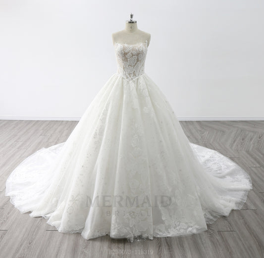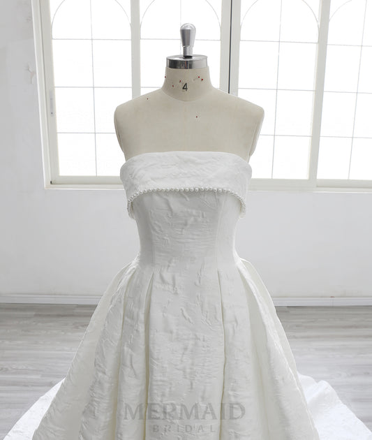New Strapless Court Train Ball Gown Jacquard Satin Wedding Dress 2025