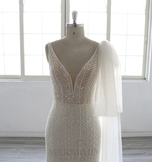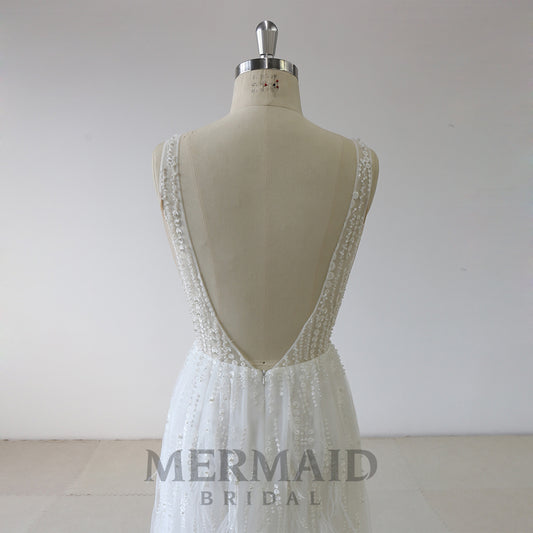 New V Neck Sweep train Heavy Beaded Slit Mermaid Wedding Dress 2025