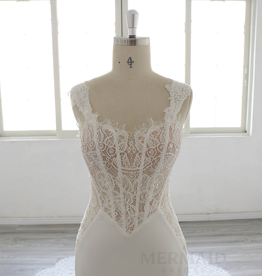 Illusion Lace Corset Mermaid Wedding Dress 2023