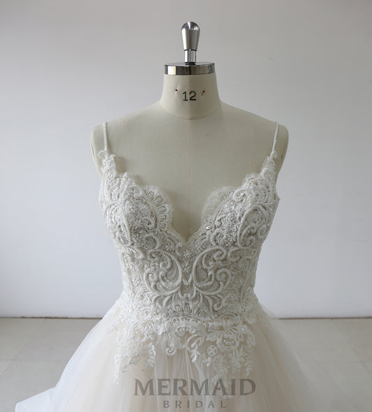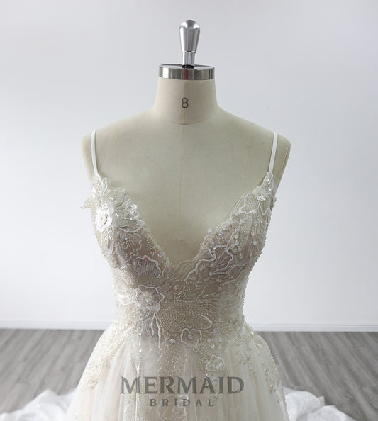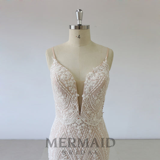 New Lace Spaghetti Heavy Beaded Mermaid Wedding Dress