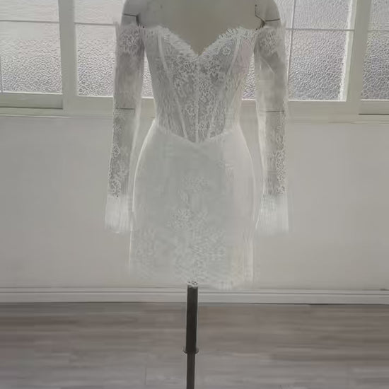 Long Sleeves Lace Short Knee Wedding Dress