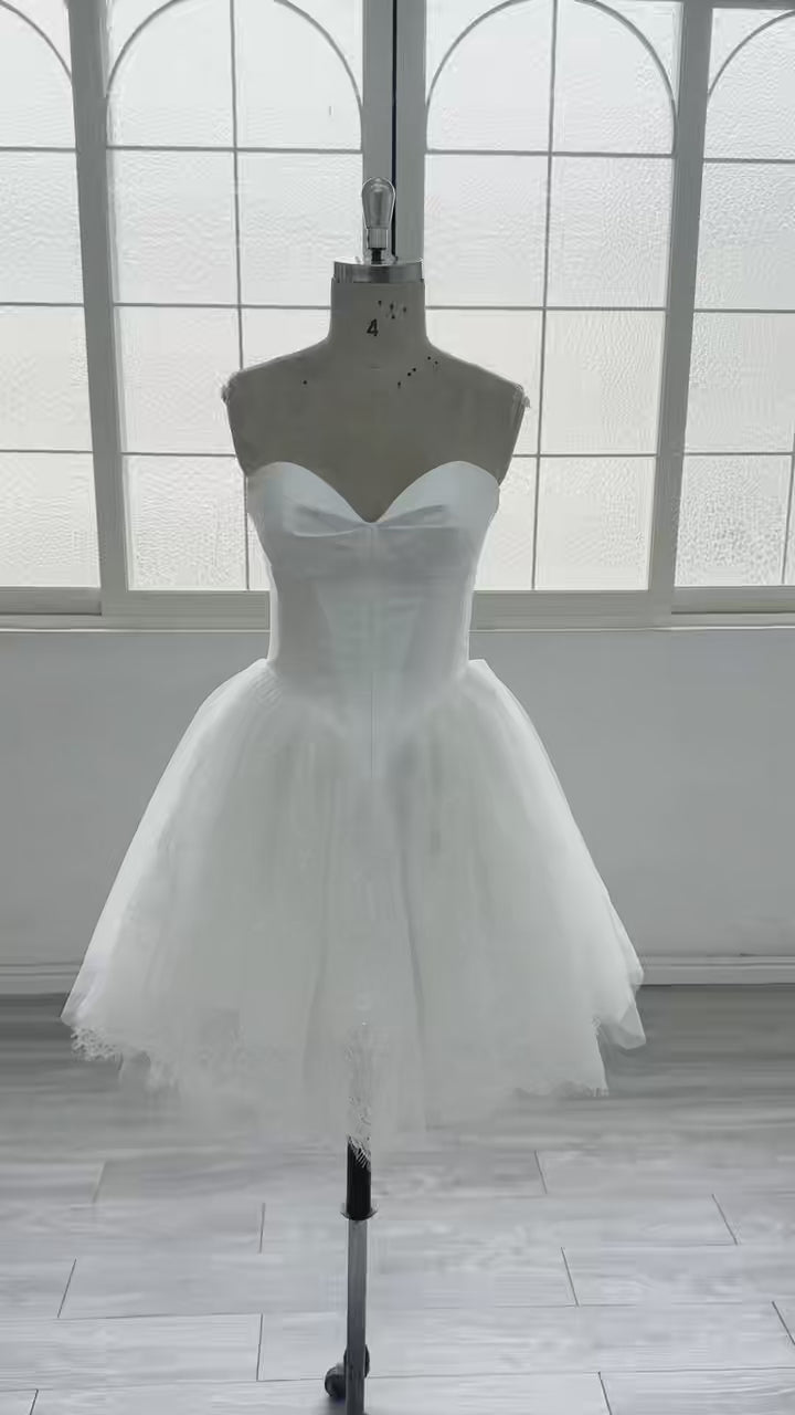 Sweetheart Neck Lace Short Knee Wedding Dress 2026